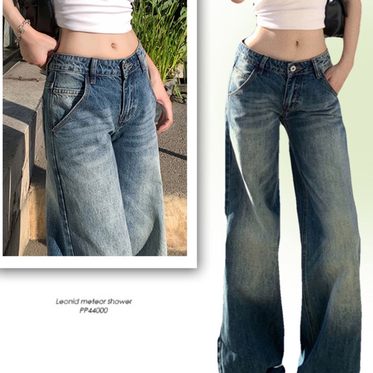 トレンドを押さえたローウエストデザインのワイドレッグジーンズ、スリムストレートスタイルです!