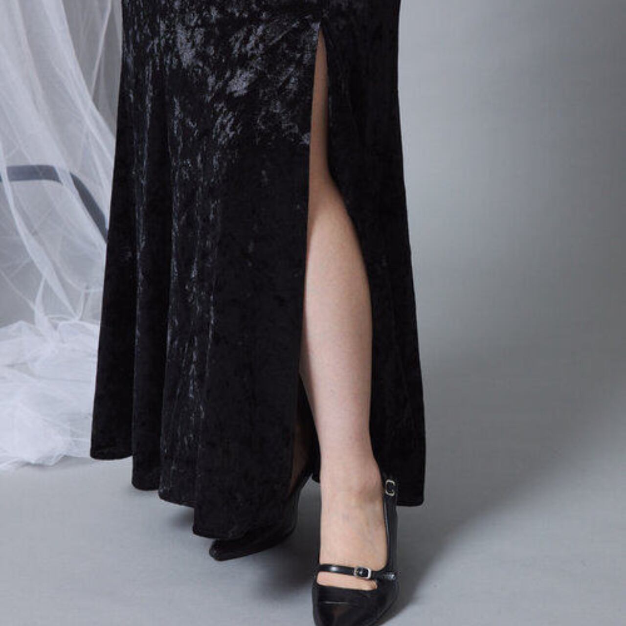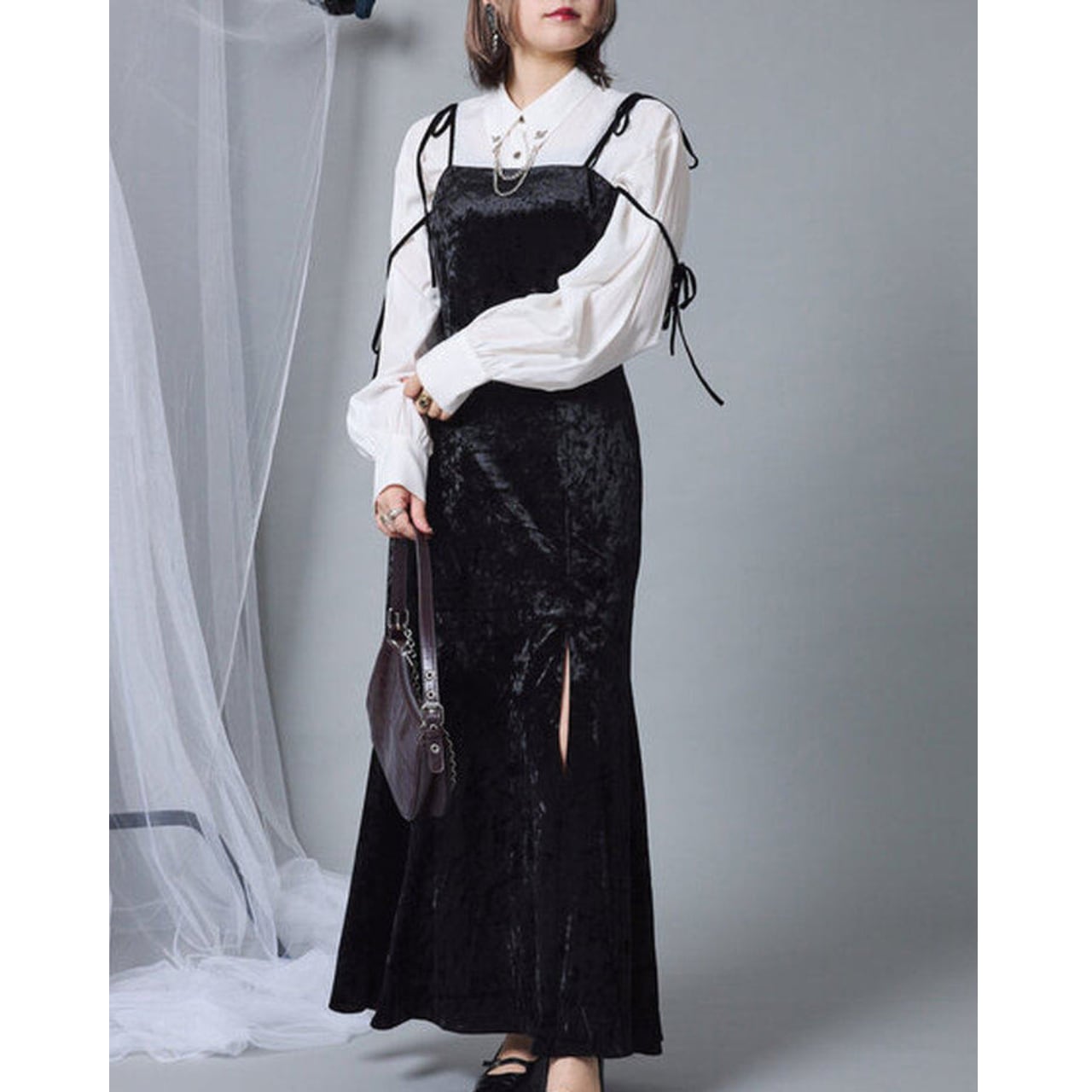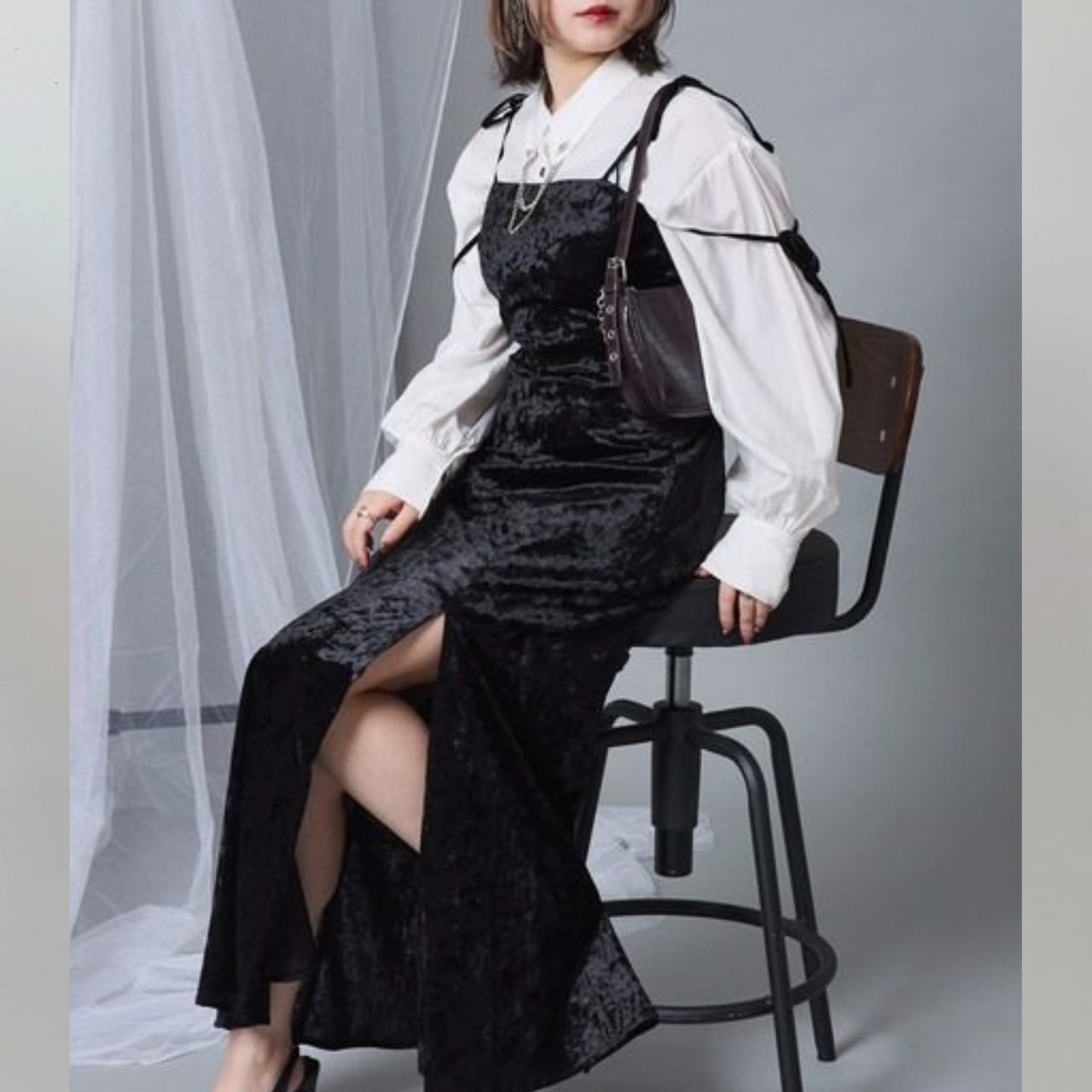 エレガントさとセクシーさを兼ね備えた「ペアーベルベットスリットスリップドレス」です!柔らかなベルベット素材が身体に優しくフィットし、着るだけで洗練された印象を与えます。スリットデザインがさりげないセクシーさを引き立て、特別なデートやパーティーシーンにもぴったりです☆